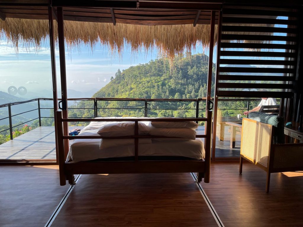 Staying at 98 Acres Resort was stunning. We arrived as the mist was coming in, but once it cleared, we had an uninterrupted view of the tea-covered hills, Ella Gap and Little Adam’s Peak from our balcony. We could even make out people climbing to the top at sunrise from our deck.