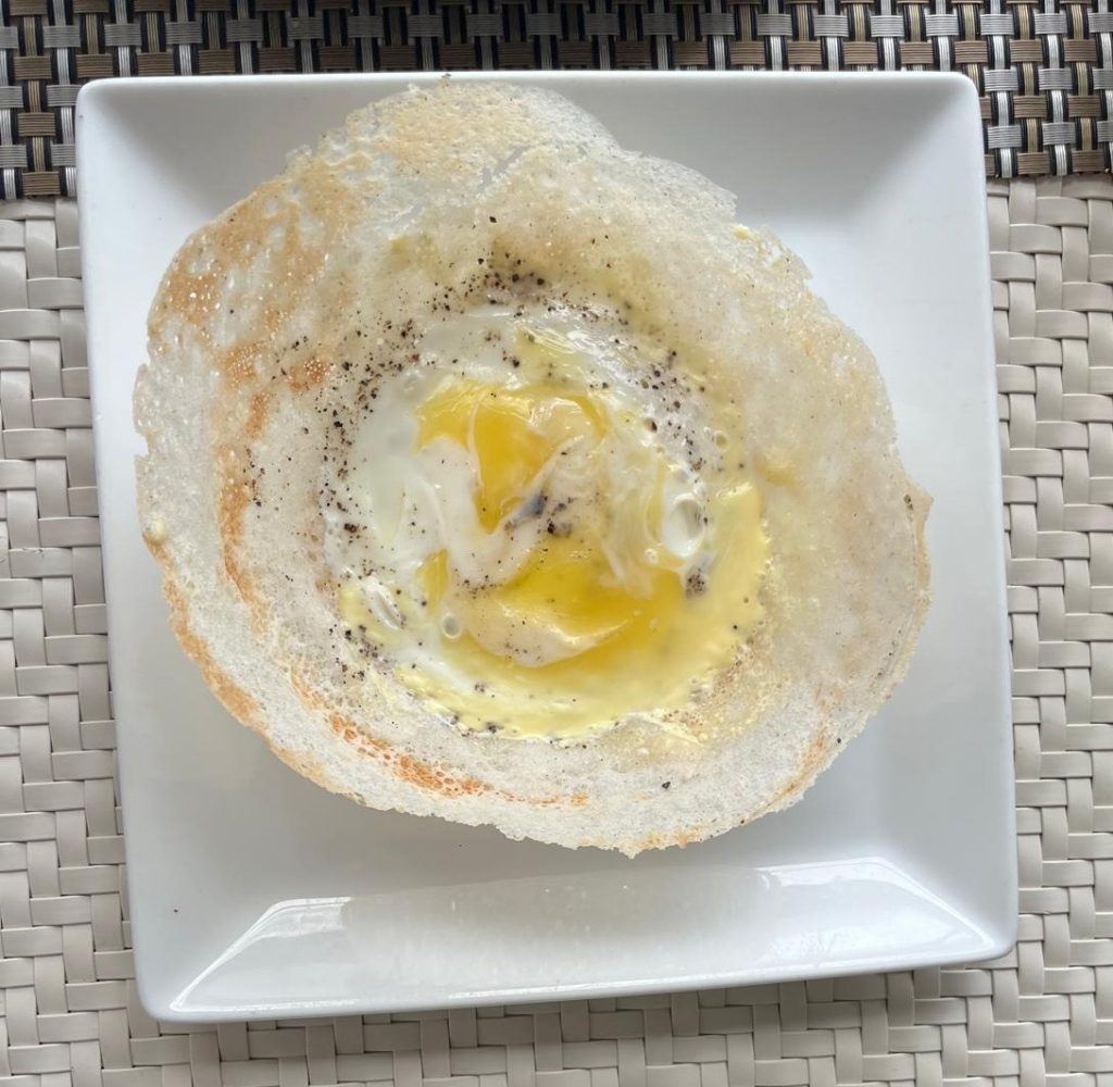 I loved the hoppers – bowl-shaped pancakes usually served with fried egg at breakfast.